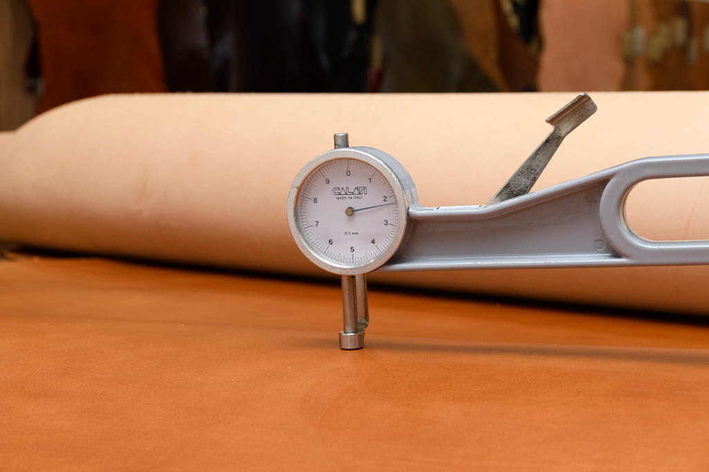 肉厚な原皮を漉いて2.5mm程度に仕上げているため、お腹の方もしっかりと繊維が詰まっており、大変使いやすくなっています。