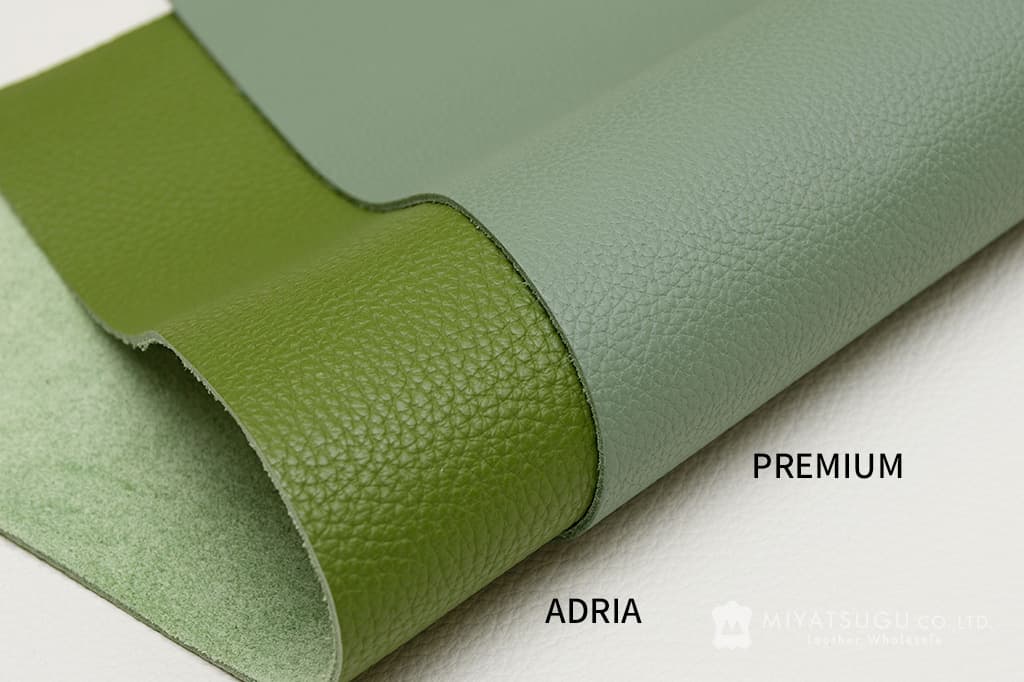 小さめのシボで半光沢の自然な表情を持つため、小物はもちろん、ベビーシューズのような小さな製品でも高級感を演出できます。