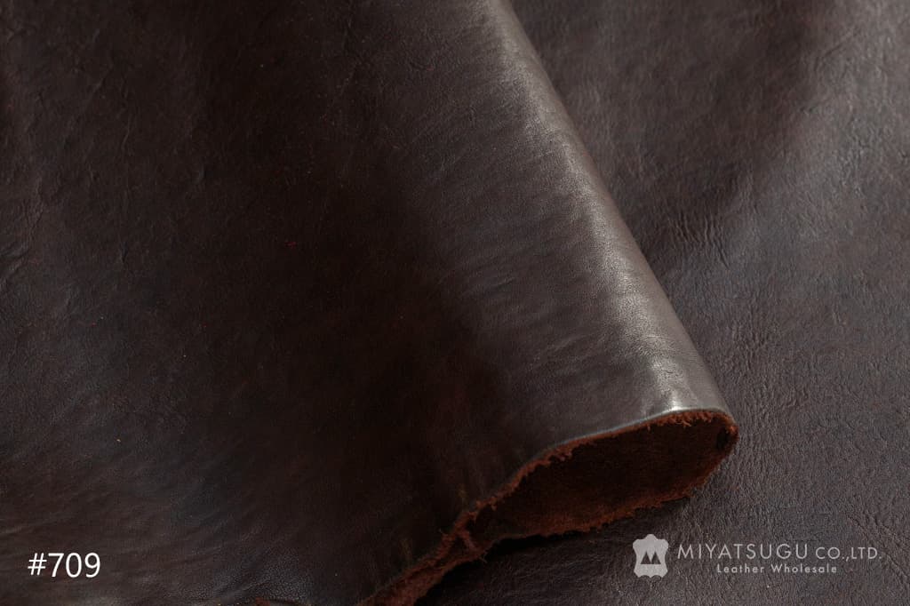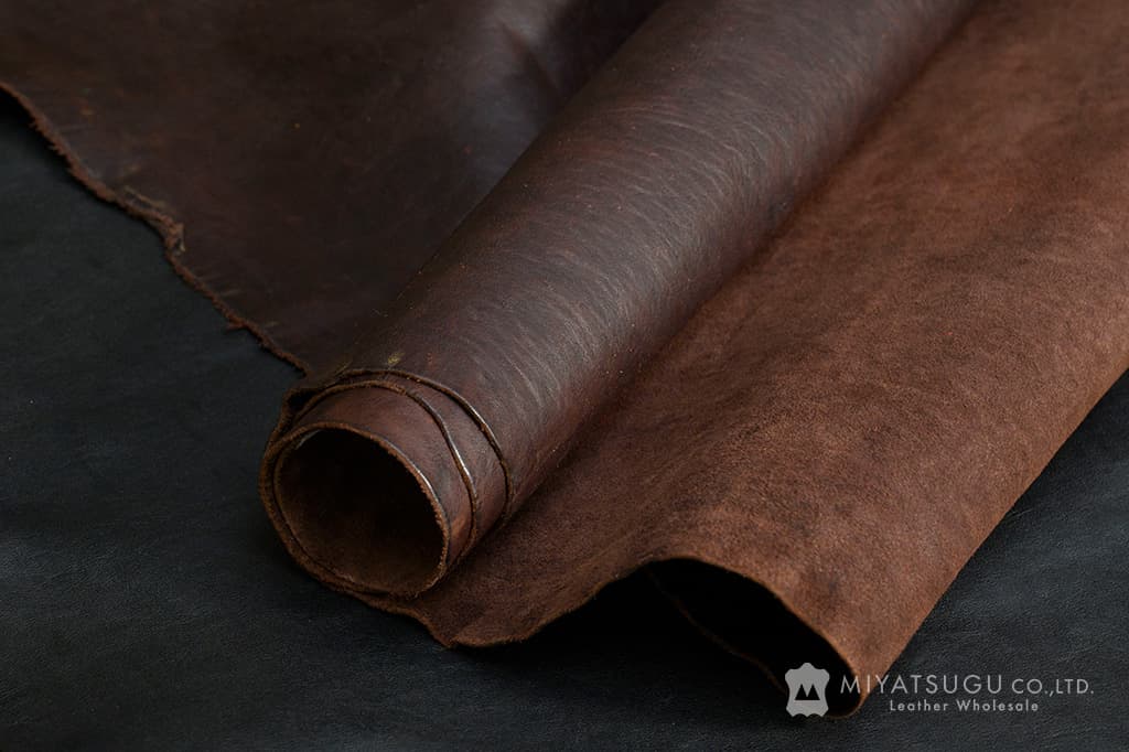自然なシボ感と、たっぷりと含まれたオイルが特徴で、馬革ならではのしなやかさと風合いを備えており、衣料や袋物、小物などにおすすめです。