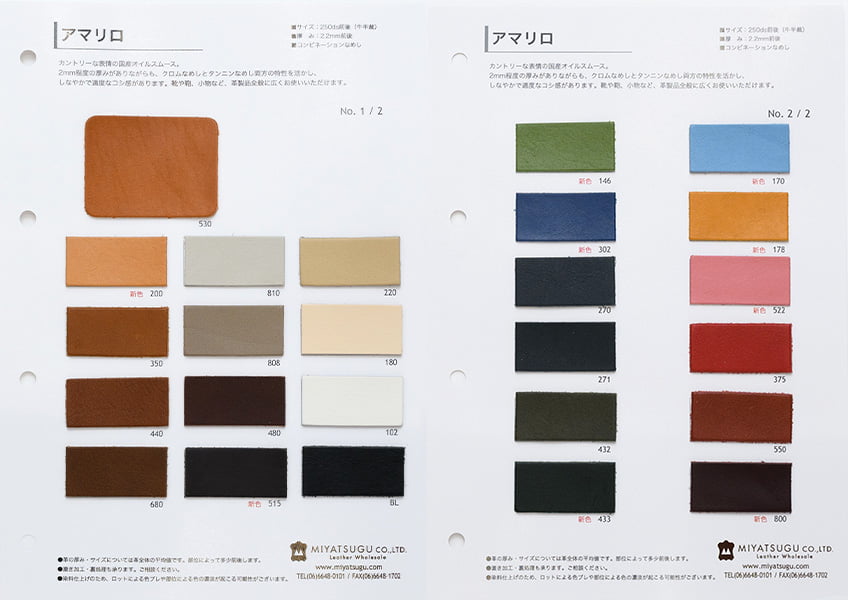 写真では革の手触りや質感、色味などが伝わらないため、革を購入される前にはまず見本帳のご購入を推奨しております。
